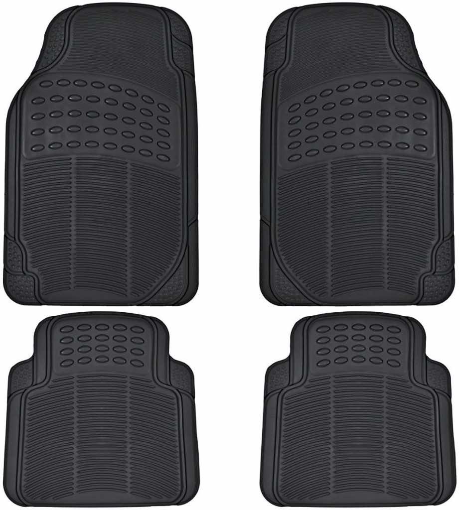 这是一套重型四件套的前后地垫;它可以保护车辆地板免受泥、雪、泥土、溢出物等的伤害。这些汽车脚垫是由厚而有弹性的橡胶制成的,很容易弯曲;山脊和深深的沟槽有效地包含污垢和碎片。这些垫子的防滑设计不会在地板上打滑或滑动;容易用水清洗。