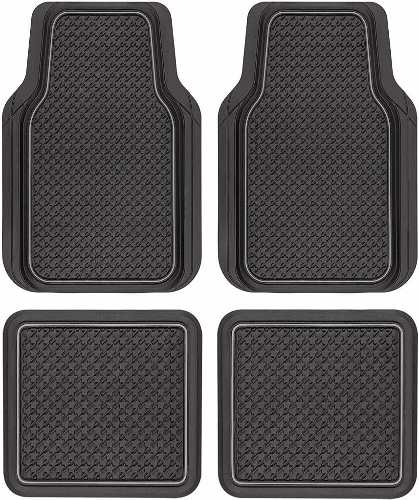 四季通用的橡胶地垫可以保护你的汽车地板不受污垢和碎片的伤害;改进的更深的花纹保持水,雪和泥;地毯爪防滑夹板保持你的地垫到位。4件套地板垫的设计是修剪,以便他们可以定制,以适应几乎任何车辆;它们的设计确保了垫子在零下的天气下不会卷曲、开裂或变硬。
