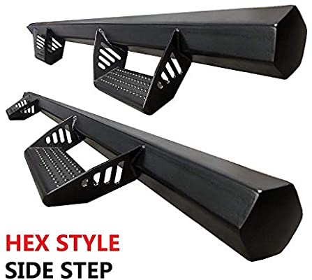 Ajaa六边形双驾驶室4博士六边形风格跑板是一个设计,是最大胆的,其六边形钢设计是由黑色涂层钢制成的持久耐用性。它有助于保持您的车辆安全的情况下,从任何一方的碰撞,因为酒吧延长,以给车辆额外的保护。用户在购买后,需要咨询受过培训的人员,以便更好的安装过程。可用在这里