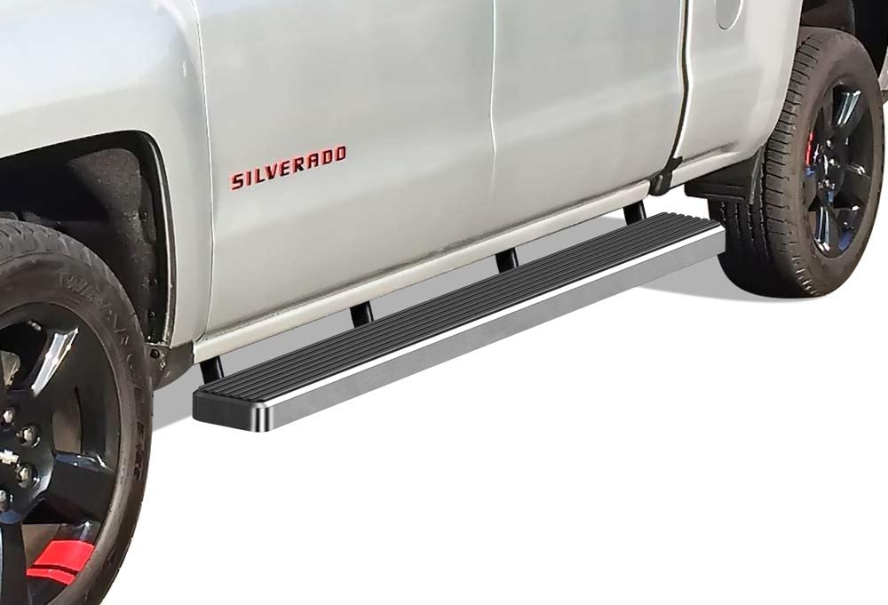 接下来,我们有APS iBoard 304不锈钢抛光5英寸银跑步板为GMC Sierra。这些跑步板可以买到不同的尺寸,以满足您的需要。这些还包括整个跑步板的踏面覆盖,确保防滑保护,无论你把你的脚,以防止意外跌倒。