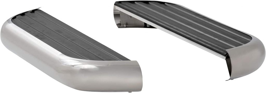 这些板装备运行车辆安全舒适的入口和出口,以6-1/2-inch宽板5英寸宽,防滑的橡胶履带。铝基地这些步骤是高度耐腐蚀的持久强度和刚度,而不锈钢装饰提供了持久的镜面光泽。