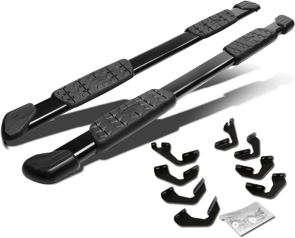 这些Running Boards are designed in 3 inches round tube with UV-resistant non-slip wide step pads that give a wider step area for secure footing. They are made of heavy-duty mild steel with E-coating and heavy-texture black powder coat finish to give rust-resistance and anti-scratch quality. They come with an easy bolt-on installation and a 5-year warranty against manufacturing defects.