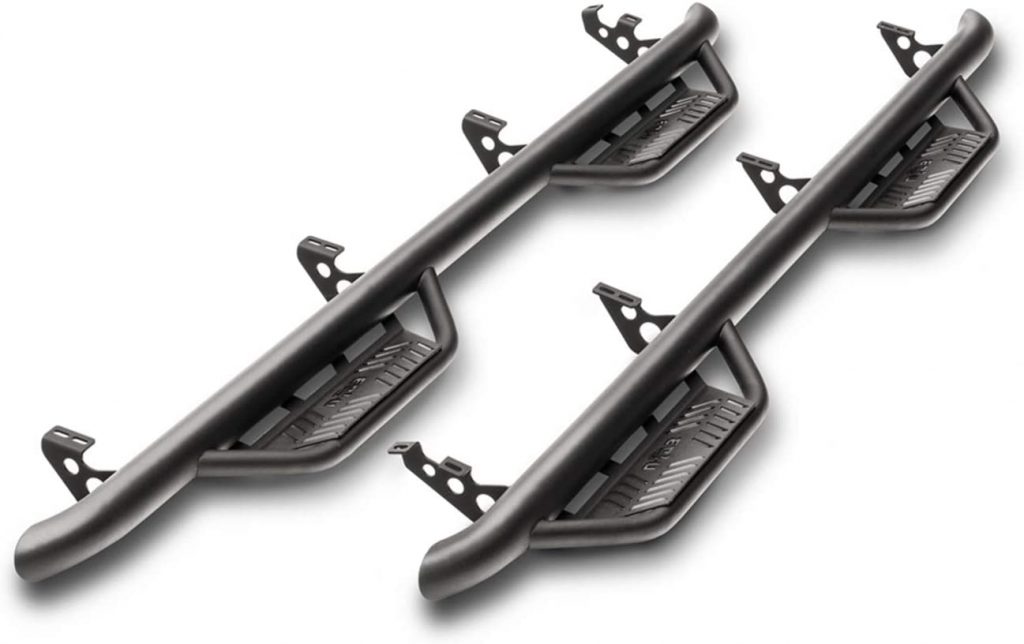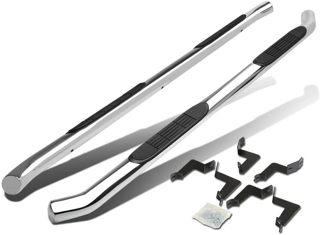 The fourth on our list of running boards are built from durable, rust-resistant stainless steel. They feature large slip-resistant step pads and 3-inch diameter steel tubing. They are designed to hold-up a maximum weight of 500 pounds and come with high-strength mounting brackets that are specifically made for vehicles. They are made for an easy bolt-on installation with no drilling required.