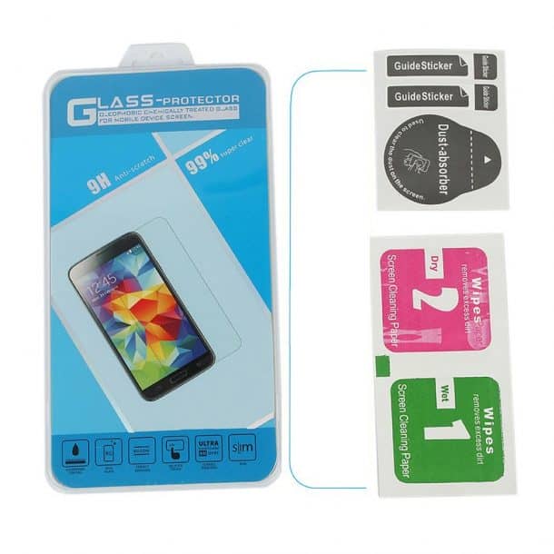 这是一个0.33毫米厚的钢化玻璃屏幕防护具有9H硬度(略低于钻石)。这种表面硬度是普通PET薄膜的三倍。保护你的手机不被刮伤,防爆,防尘,防指纹,防油,防辐射。防守者只覆盖掩护的平坦部分。包装包括一个玻璃屏幕保护膜。您可以在下面的链接中找到安装说明。