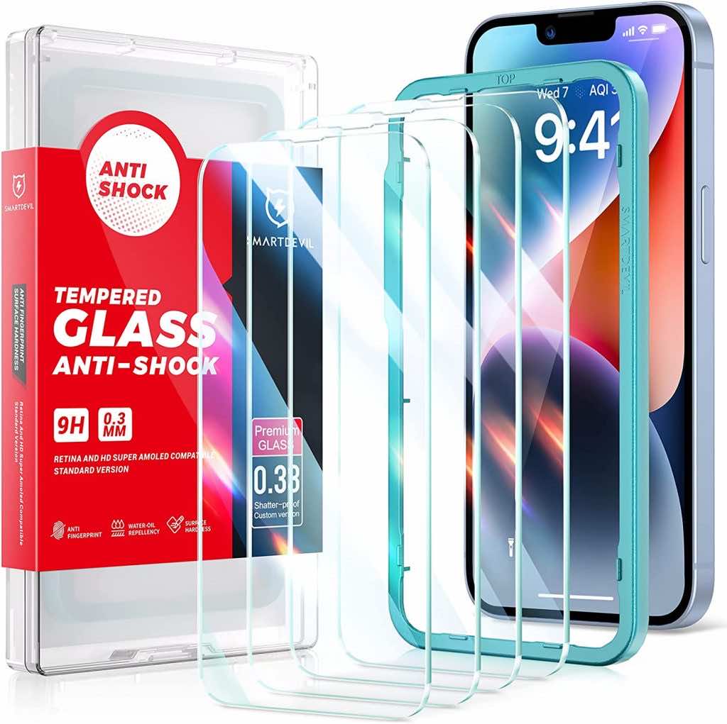 下一个是苹果iPhone的SmartDevil钢化玻璃屏幕保护器14 +。钢化玻璃屏幕保护器是保证防刮由于其9 h屏幕的硬度保证了最大程度的保护。薄,完全透明的保护已经完全切断二维圆形,确保顺畅的感觉比其他封面和几乎没有额外的增加重量。