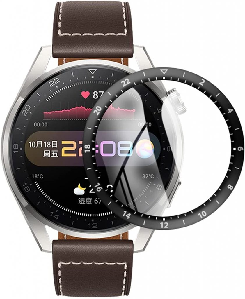 接下来是华为手表3 Pro的Vuciya屏幕保护器。屏幕保护膜有99%的高清透明度。高透明防指纹高级屏保持原有颜色和亮度,保护器防水功能,完美保护您的智能手表。表壳专为室内和室外活动而设计,因此0.2毫米超薄特殊涂层确保了触摸精度。完美的触摸和滑动精度功能,让您有效地使用您的手表。