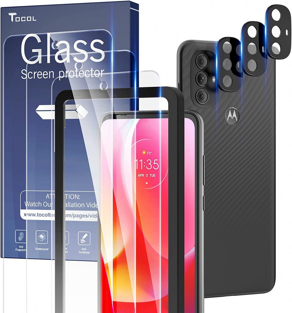 屏幕保护器用于保护屏幕,触摸并显示智能手机免受伤害。它们防止智能手机的屏幕刮擦,指纹,灰尘或其他损害手机的屏幕。必须将它们放在手机的屏幕上,以确保其保护。摩托罗拉公司是一家科技公司,已经开发了许多技术产品,包括智能手机。摩托罗拉Moto G(2022)是由摩托罗拉公司制造的另一款智能手机,该手机于2022年5月19日推出。它采用Moonlight Gray的单色选项。这款手机具有6.5英寸的IPS LCD,刷新速度为90Hertz。4GB和6GB有两个RAM选项,两个内部存储选项为64GB和256GB。背面有一个三重摄像头,正面有一个自拍相机。手机中安装了一个5000 mAh大电池,可以正常使用可轻松持续一天。摩托罗拉Moto G(2022)的大多数屏幕保护器都是从茎市场B购买的,但是许多优质的选择都可以在线获得。 Here are the 10 best screen protectors for Motorola Moto G (2022) available on Amazon. Scroll down for more info.