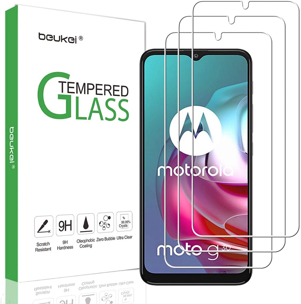 列表中的下一个是Motorola Moto G30的Tingyr屏幕保护器。该屏幕保护器由9H钢化玻璃制成,可保护您的手机免受滴,颠簸和刮擦的影响。超专有切割技术与手机轮廓匹配,并提供边缘覆盖率。它提供了出色的灵活性,从而使触感平滑和原始观看质量。