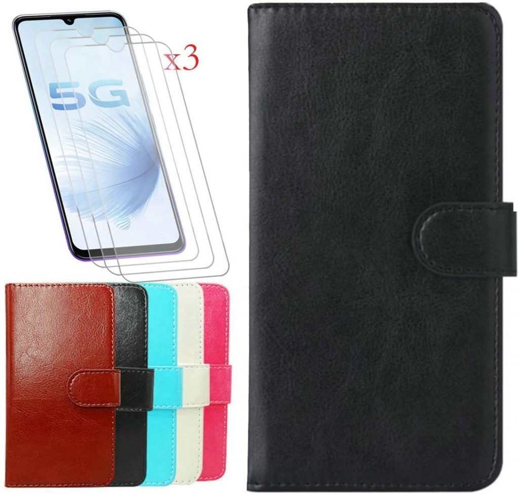 5. Fzym PU皮革钱包钱包翻盖保护套,用于Oppo A97和钢化玻璃保护器