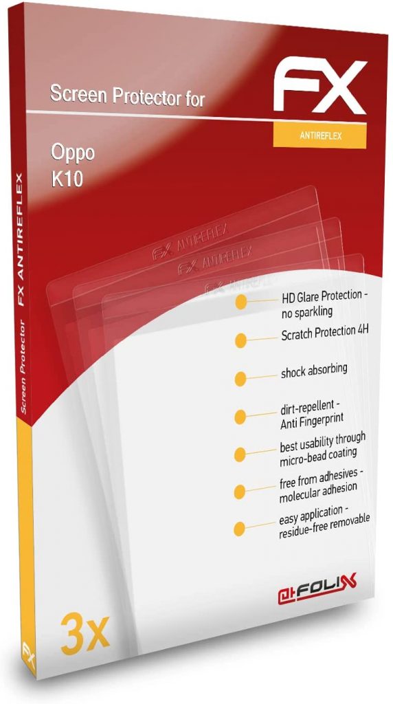 接下来是Oppo K10的Atfolix FX清除屏幕保护器。FX清晰的屏幕保护膜是用于高分辨率屏幕的透明,高科技保护膜,并且是超清晰且涂覆的。这种创新的保护膜以其出色,清晰的透明度和出色的刮擦性为特色。这种高度透明的屏幕保护器非常容易应用,并且可以随时删除,而无需留下残留物