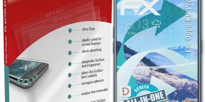 首先,是Oppo K9 Pro的atFolix FX-Clear屏幕保护器。FX-Clear Screen Protector是一种透明、高科技的高分辨率屏幕保护膜,具有超透明和硬涂层。这一创新保护膜的特点是其精湛的,晶莹剔透的透明度和优秀的抗刮擦性。这种高度透明的屏幕保护膜,非常容易使用,可以随时移除,不会留下残留物