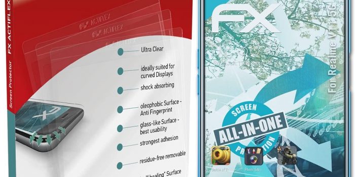 Realme V11 5G列表上的下一个选项是atFoliX屏幕保护器。由优质玻璃薄膜制成。该材料的硬度极高,经久耐用,防止划伤和磨损。这种疏水涂层可以防止屏幕上的汗水,并在应用后将气泡挤出。由于凸起的边缘,它提供了额外的保护。它不像普通的屏幕外壳那样容易磨损。