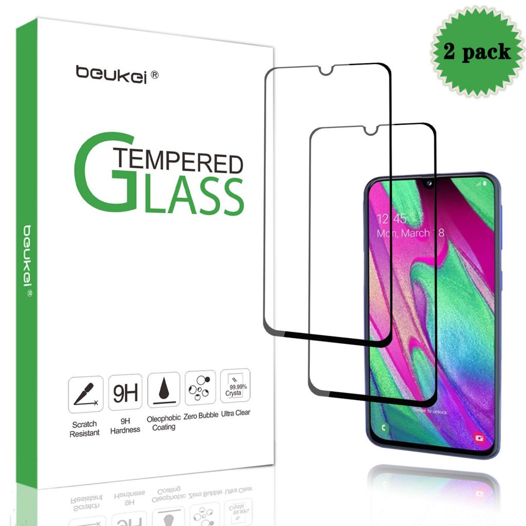接下来,我们有这款由Beukei为三星Galaxy A40制造的屏幕保护膜。这个保护器可以有效地保护你的手机免受钥匙、指甲和其他日常危险的划伤。防指纹,疏油涂层抵抗污迹,确保清晰度在任何时候。