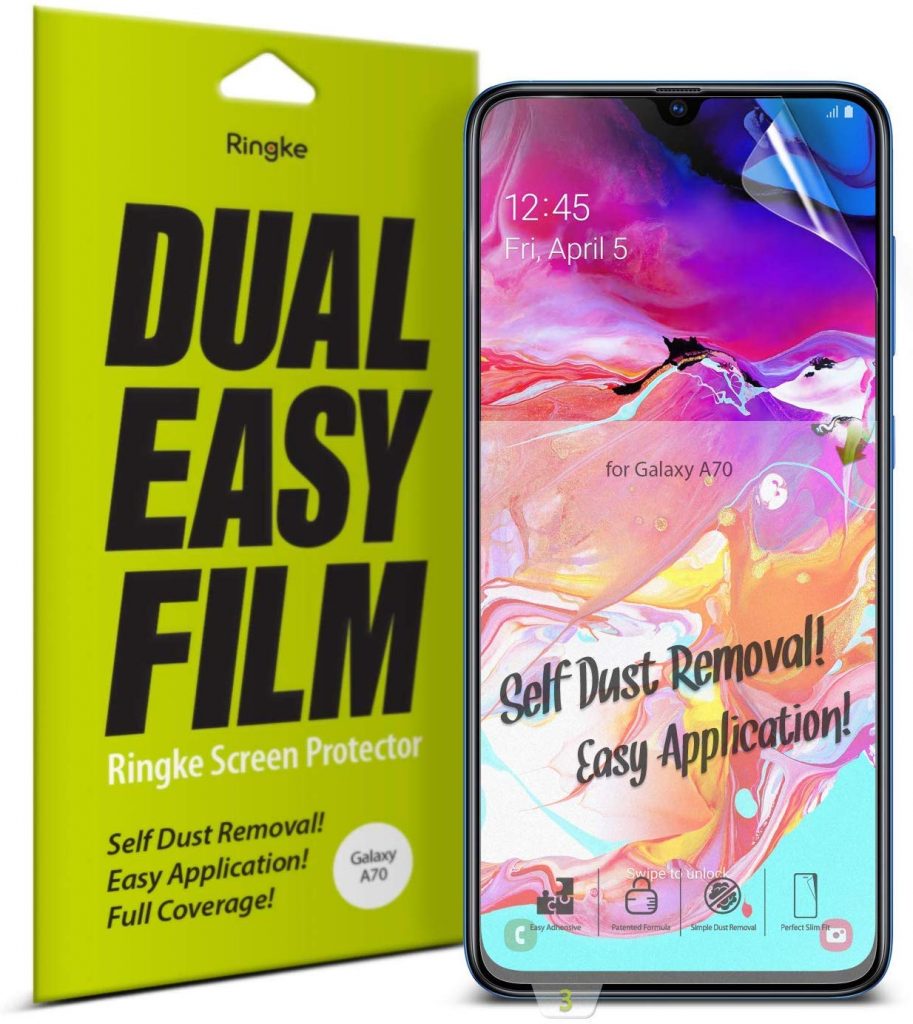 接下来,我们有这个屏幕保护器由三星Galaxy A70S Ringke。机器9 h硬度提供额外的力量,防止划痕,破裂和凹陷,而薄,透明玻璃确保用户和浏览体验是伟大的。简而言之,这是一个屏幕的星系A70S保护者得到。
