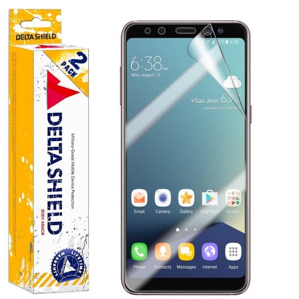 2。防弹衣更为坚实DeltaShield完全覆盖屏幕保护器三星Galaxy A8 2018(7.85美元)
