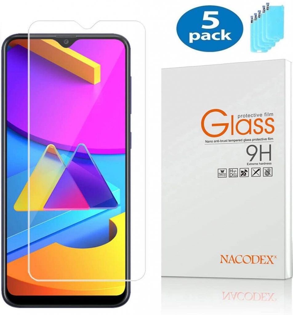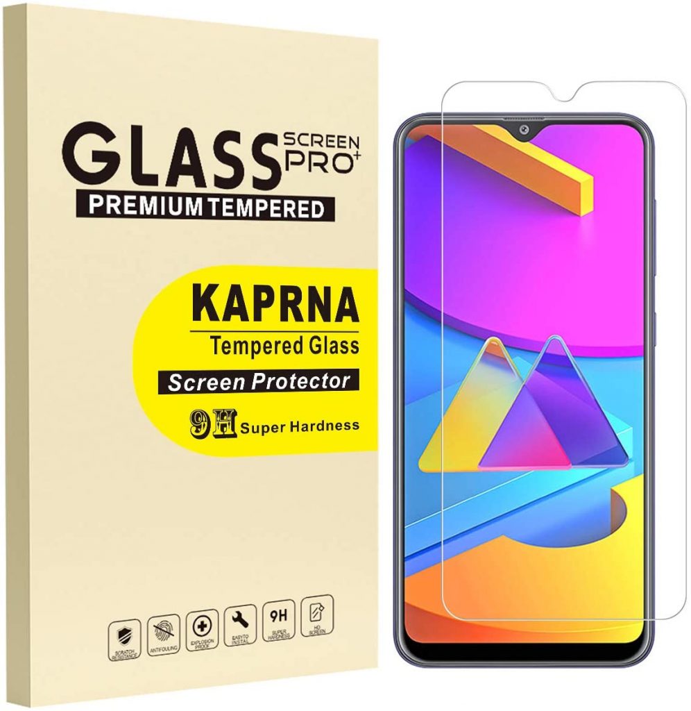 首先,我们有三星Galaxy M10s的KAPRNA屏幕保护膜。这款屏幕保护膜由9H硬度的钢化玻璃制成,使您的手机屏幕免受划伤,甚至从刀和尖锐的物体。它有一个异常清晰和光滑的表面,保留了原始的显示质量和触摸屏精度。该保护器还确保容易和无气泡安装,不留下任何残留物。
