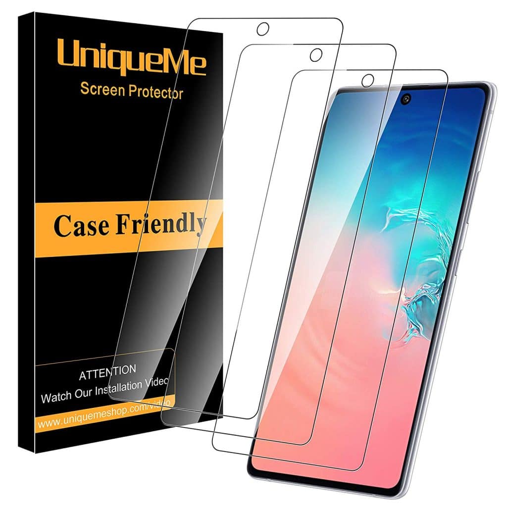 从列表开始,我们有三星Galaxy S10 Lite的Uniqueme屏幕保护器。该屏幕保护器由仅厚度0.03mm的钢化玻璃制成,因此友好型,不会影响屏幕的亮度或颜色。它带有添加的含油含涂层,该涂层不会让指纹,油和污迹弄脏屏幕。