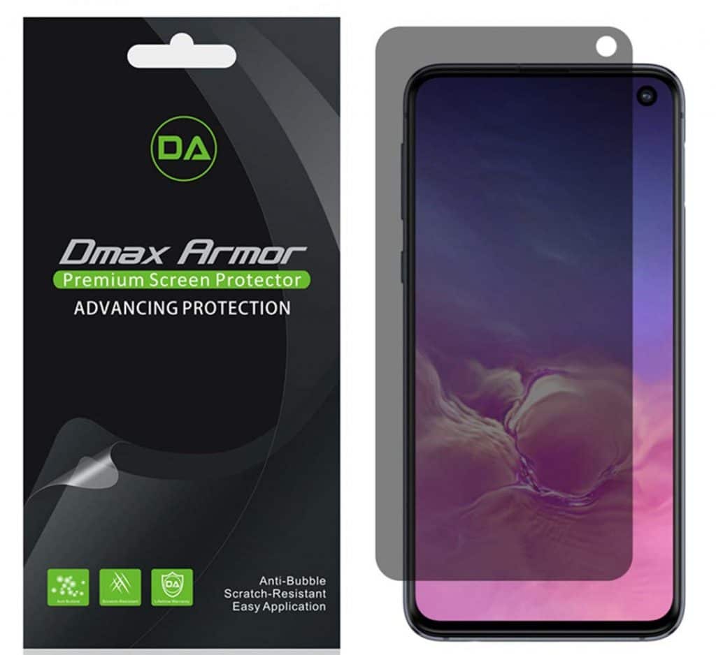 首先,我们为三星Galaxy S10 Lite提供了DMAX装甲的抗Spy屏幕保护器。它由具有自动表面的最高质量多层优质膜制成,可确保轻松且无泡泡的安装。该保护器还可以在肖像模式下充当隐私膜,只允许直接在屏幕前的人查看屏幕显示屏。如果您不希望其他人在屏幕上戳戳,这是一个很酷的功能!
