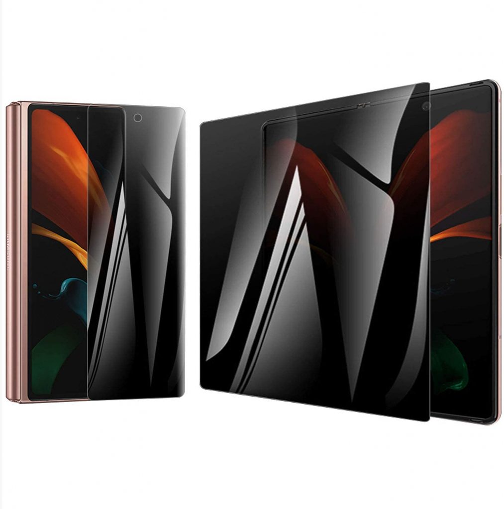 第二位,我们为三星Galaxy Z Fold2提供了高丝保护器的防胶屏幕保护器。屏幕保护器的专门设计是通过将视角缩小到屏幕两侧的45度来保护屏幕,因此没有人可以窥视屏幕并侵入您的隐私。光滑的表面可提供光滑的玻璃状感觉,并保留屏幕的原始触摸灵敏度。