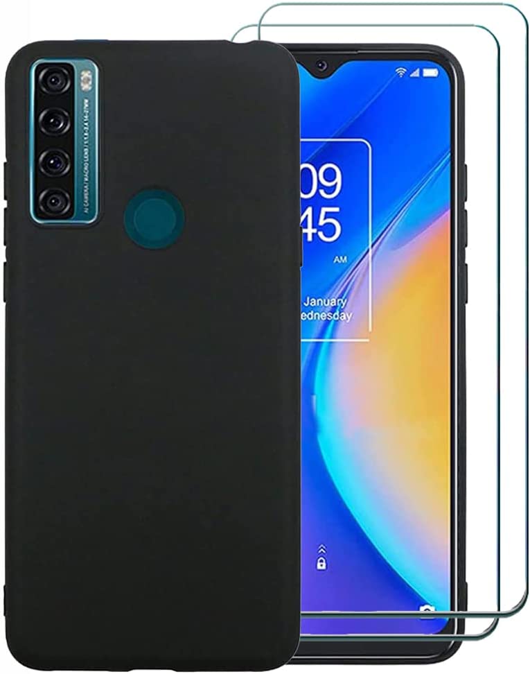 Ranyi给黑人苗条硅胶TPU情况2 pc钢化玻璃屏幕保护器,支持无线充电,和高质量的。电话情况下灵活有弹性的硅胶/橡胶/ TPU材料,钢筋角落时保护和减震装置下降下降,和全身保护你的手机。