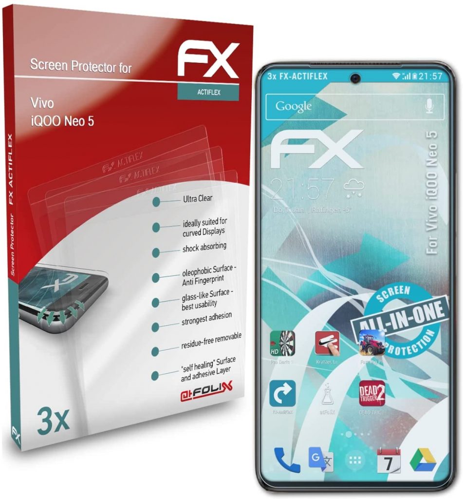 2.适用于Vivo iQOO Neo 5的atFolix FX-Actiflex屏幕保护器