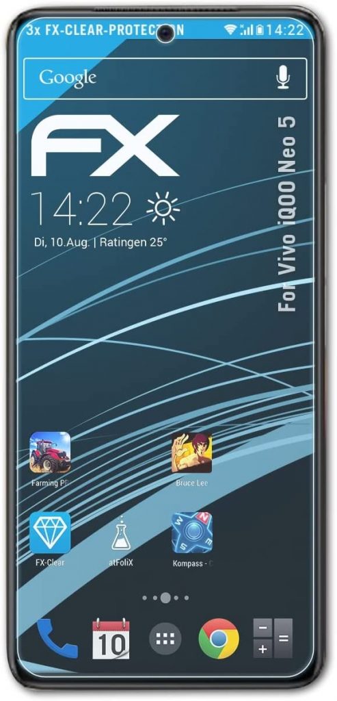 Vivo iQOO Neo 5的atFolix反反射屏幕保护器是我们列出的10个最佳的Vivo iQOO Neo 5屏幕保护器中的第三位。这款屏幕保护器是一个无眩光,吸收震动,完美适合,并与Vivo iQOO Neo 5兼容的保护器。它有一个抗反射的效果,由于精细亚光表面。当在阳光下和强光源下工作时,显示器的可用性有了显著的改善。由于集成的TPU吸收层,它也是一个高度吸收冲击的保护器。屏幕保护器将显示器破损的风险降低到最低限度。