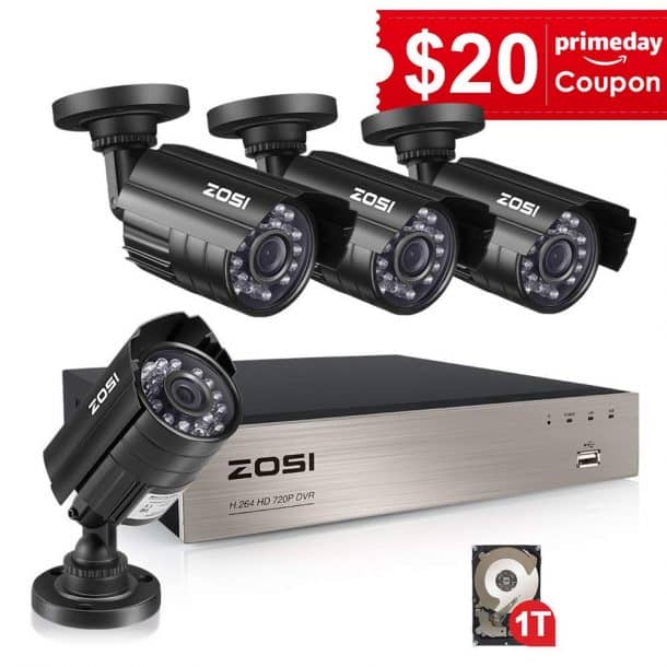 1。ZOSI举办HD-TVI 720 p视频安全摄像系统(90.99美元)