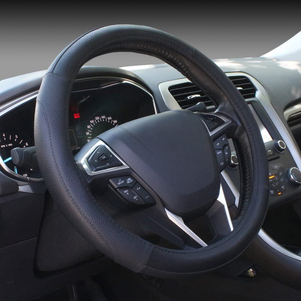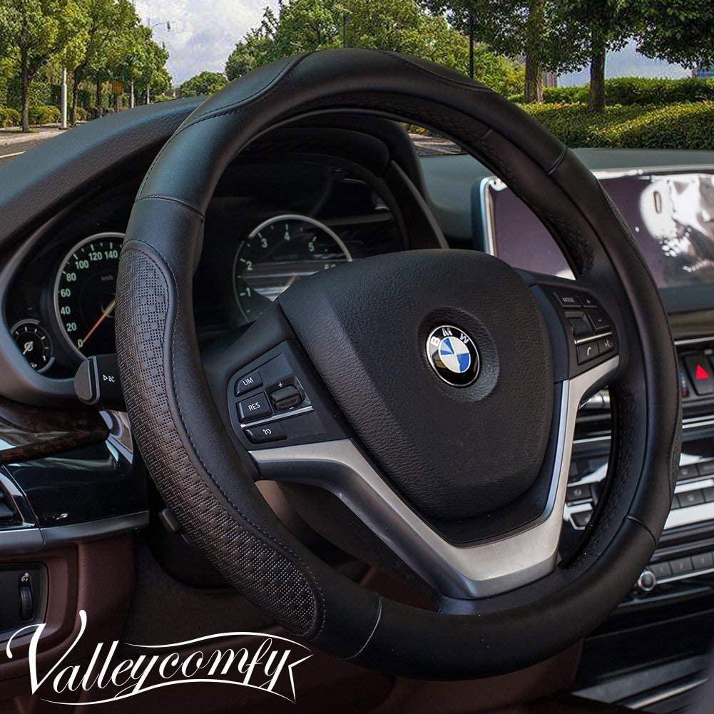 9. Valleycomfy皮革方向盘盖环球15英寸 - 抗酸,防滑和气味免费(04 -BLACK)