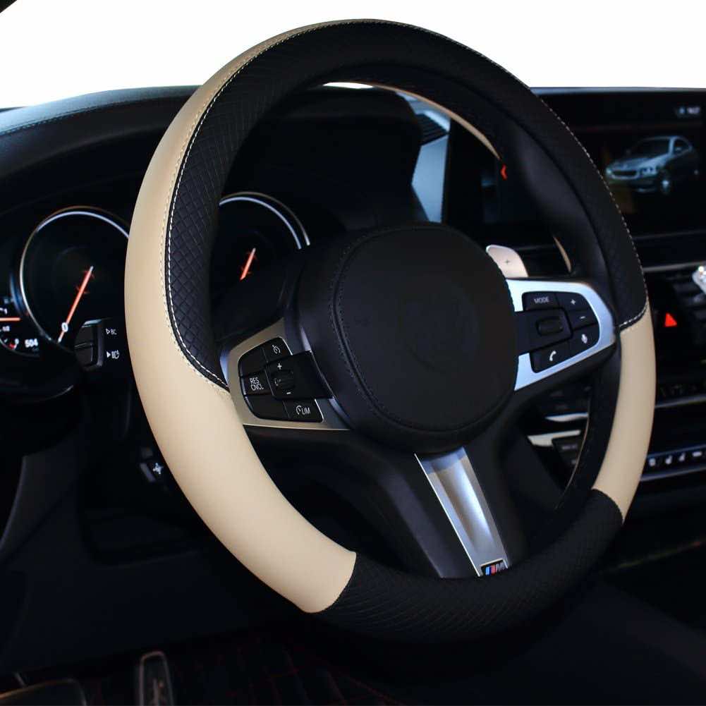 这些方向盘套适合方向盘的大小从14.5“15”(37厘米至38厘米)直径。这个材料是环保,耐用,防滑,可以延长使用寿命的方向盘。