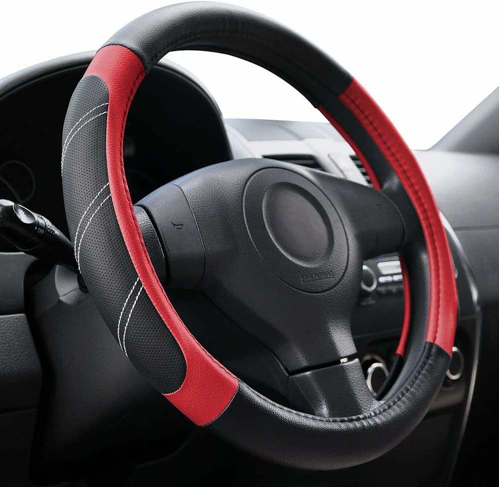 Elantrip皮方向盘套适合许多标准方向盘直径14 1/2英寸到15英寸。创建一个特殊的内圈是最灵活的快速安装(和删除)。指令包含在每个购买。这些封面是精细穿孔和最大舒适透气超细纤维皮革,给你的车一辆跑车的感觉。