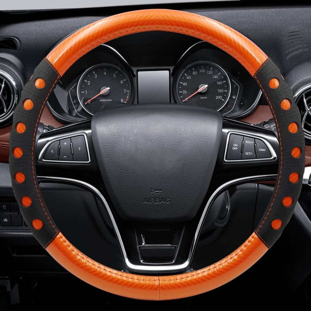 这些方向盘盖由耐用的超细纤维皮革和透气丝网制成,健康且环保,为您带来良好的触感和感觉。这些覆盖物在冬天很温暖,夏天很酷。这些盖子是防汗和防滑,稳定和耐热性的,可以更好地控制方向盘,使您可以在道路上获得更多的控制。