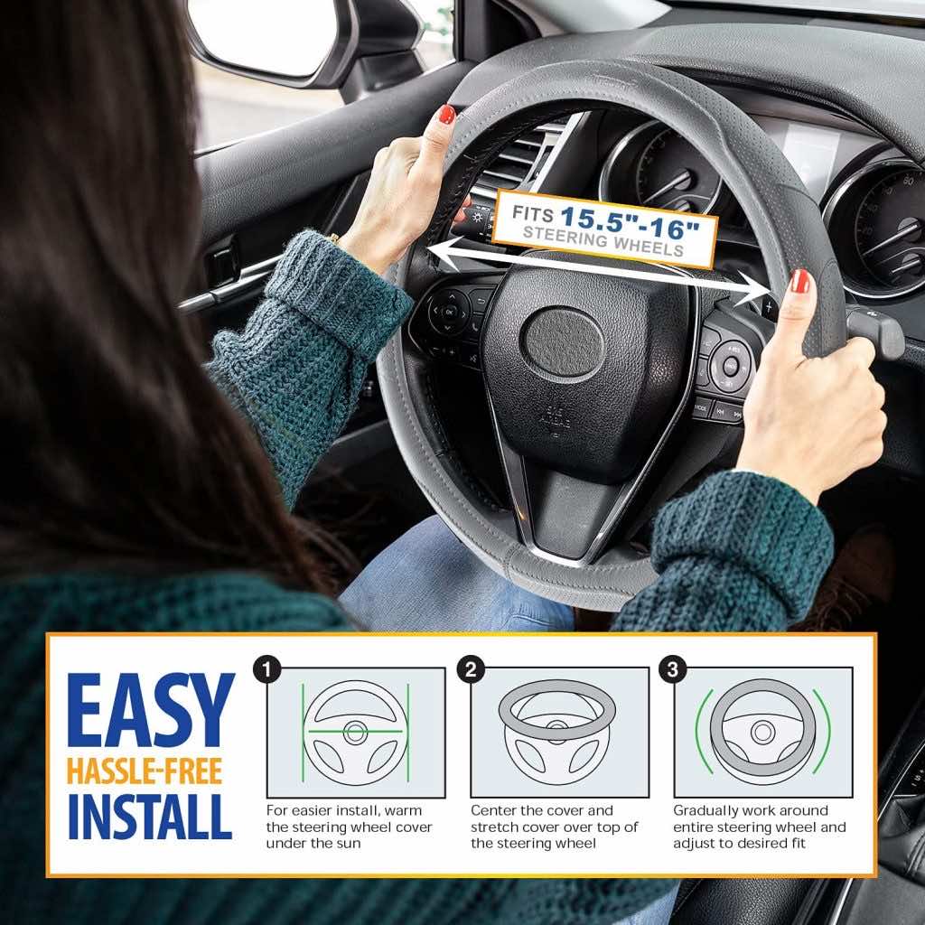 很好地提供3D防滑,透气,舒适的触感,配有漂亮的包装,给家人或朋友的好礼物。不必担心安装,因为它易于操作,任何成年人都可以轻松安装该方向盘盖,不需要工具。