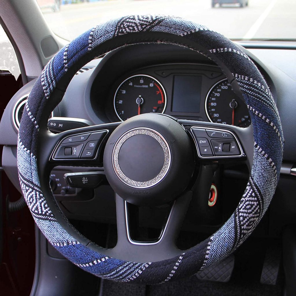 这个美丽的封面由柔软的编织材料组成,具有精美的工艺,可以为手提供舒适的感觉,并为驾驶提供了更好的抓地力。该材料使使用更长的时间,并且不会受到变化的天气影响,并使您的汽车看起来多彩。