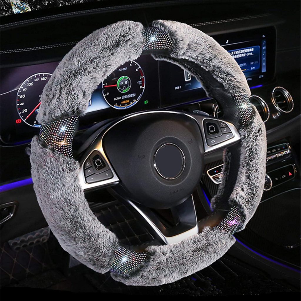 2. Nissan Sentra的Kafeek钻石蓬松的超细纤维毛绒方向盘盖