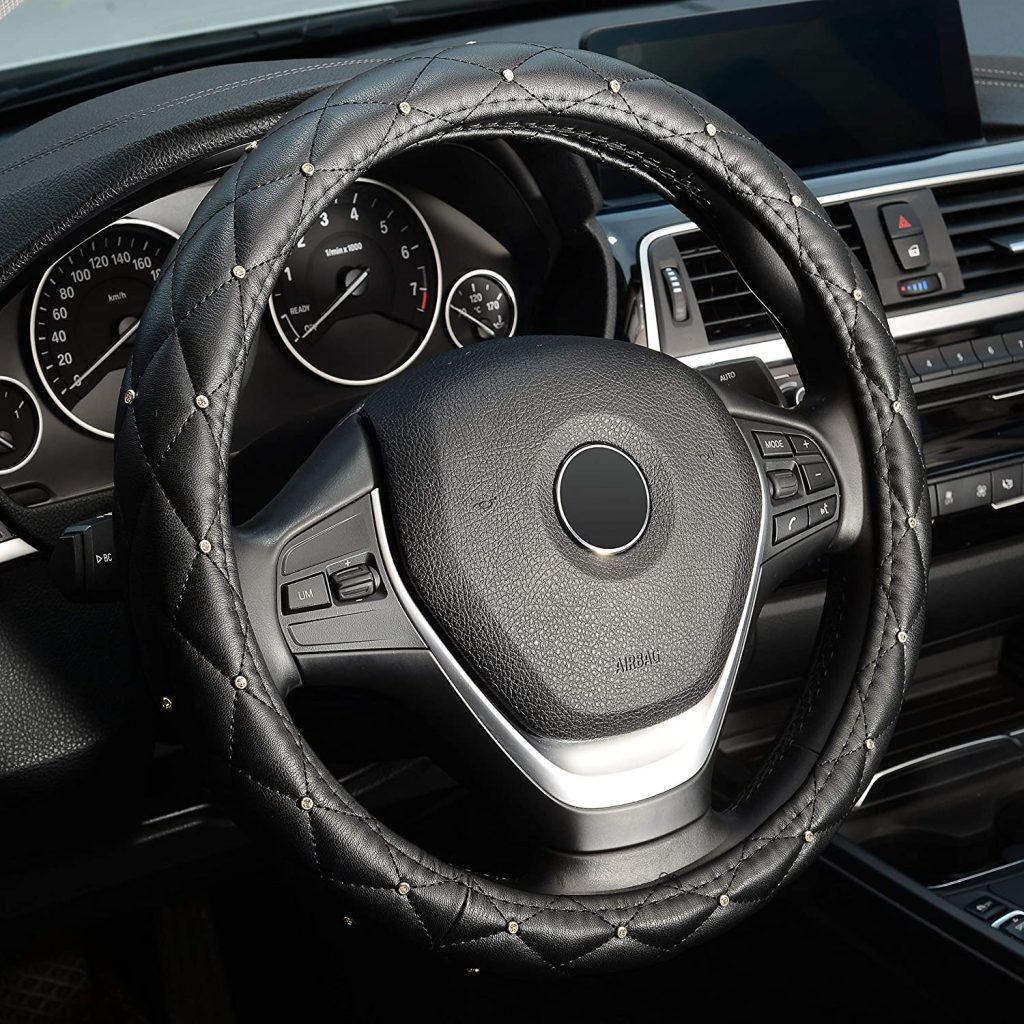 在第四位,Nissan Sentra的经济的Labbyway方向盘盖。水晶方向盘盖由耐用的超细纤维皮革和光泽的水钻制成。这使得感觉超级舒适,没有抓手,并且具有良好的防滑效果。盖子在所有四个季节中都非常适合使用,因为它具有耐热性并且不会破裂或撕裂。