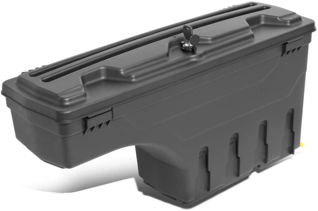 UNDERCOVER SC100D摇摆箱卡车储物箱在我们的GMC Sierra 10个最佳储物箱列表中排名第三。这是一种可锁定的存储解决方案,易于访问。盒子由光滑的黑色ABS材料制成,还具有防潮密封,以保持内容物干燥。