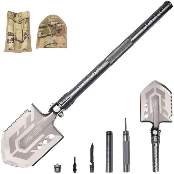 用手挖一点也不好玩,拿着一把普通的铲子也不好玩。Oulin可折叠铲是一种军用级紧急挖掘工具,适用于任何土壤。这个多功能15合一工具包包含铲子,锤子,刀,螺丝刀,和更多的日常杂工工具,让你远离麻烦。所有这些都装在一个小的携带袋里,确保你在户外永远不会丢失一件。