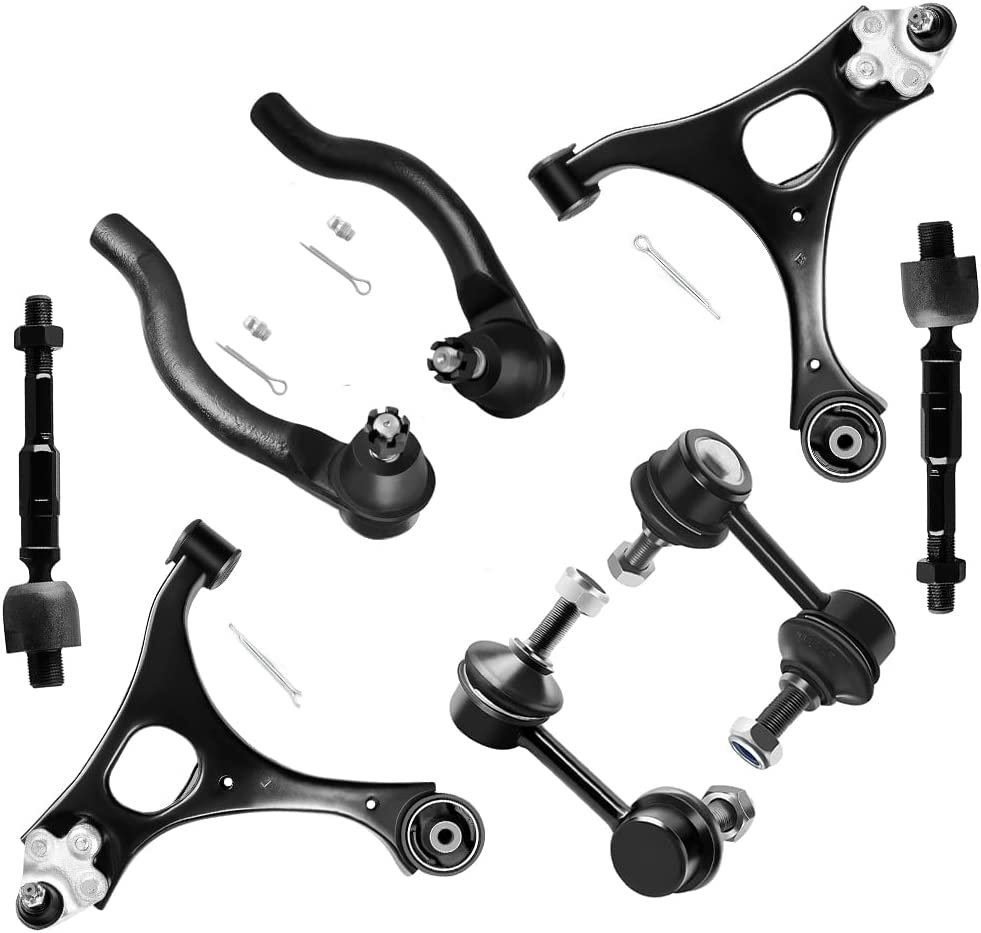 该悬架套件包括1X K620382前控制臂和球关节组件 - 驾驶员侧,1x K620383前控制臂和球关节组件 - 乘客侧,2X EV800246前内部拉杆端,1X ES800374前部外部双杆端 - 驾驶员端 - 驾驶员端 - 驾驶员端 - 驾驶员端 -,1X ES800373前外拉杆端 - 乘客侧,1x K80769前摇摆条端端链路 - 驾驶员侧,1x K80768前摇摆杆端端链路 - 乘客侧。