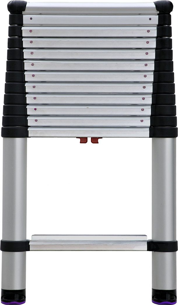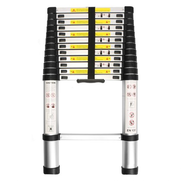 这个可伸缩的梯子是一个12级可折叠的梯子,可以延伸到12英尺6英寸。它便于携带和储存。由优质铝合金制成,这种伸缩梯子具有耐用和坚固的结构。它有一个锁机制,可以让你用拇指按钮锁定梯子。它带有一个重型携带封闭带,可以让你方便地携带这个梯子。它的台阶之间有塑料支柱,保护手指,防止折叠梯子时受伤。该梯子通过了欧洲安全标准EN131、CE和SGS认证。