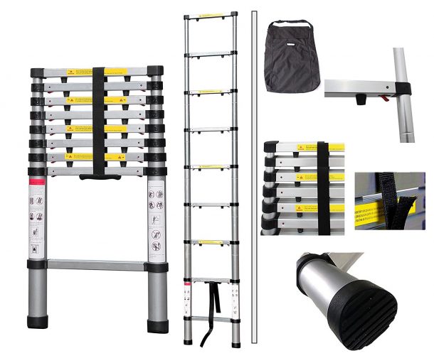 这个伸缩梯经久耐用,防锈。它很适合做家务,而且它甚至不需要太多的存储空间。它配有一个方便的袋子,方便您轻松移动。你可以根据自己的选择调整梯子的高度。你只需按一下按钮就可以轻松地把它折叠起来。