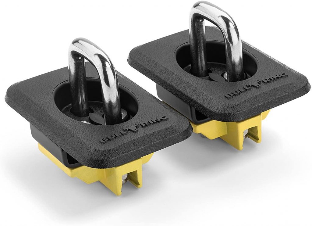 在第二位,我们有道奇公羊1500皮卡的公牛戒指5066炮齐式冲洗可伸缩的绑带锚。这些锚的每个锚的容量为1000磅,并配备了Bull Ring的终身保修。不过,它确实需要栏杆盖才能正确安装。完成此操作后,您的卡车侧面有两个完全恢复的锚。
