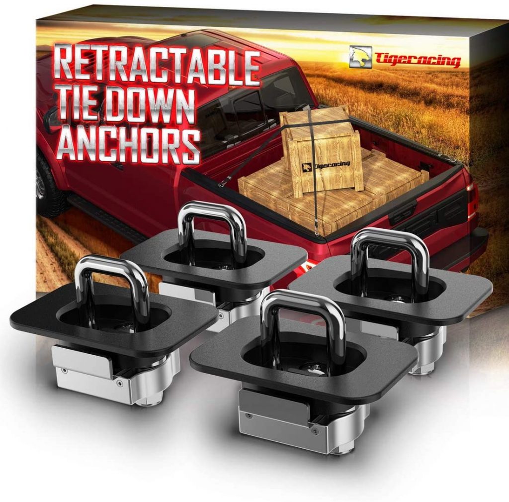 接下来,我们有老虎系下来锚可伸缩卡车床顶部侧D环GMC塞拉。这些d环式捆绑锚确保安全和精确的配合,可以处理高达3000磅的重量。它们还可以应对不同的天气条件,如雨和风,而不会被刮伤。