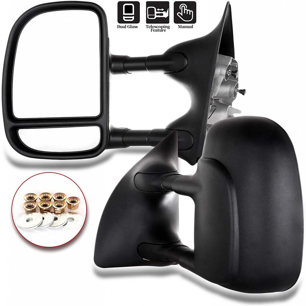 在我们的牵引镜列表中的第九,DEDC牵引镜是手动操作的。它们是手动加长的,而且没有加热。镜子是黑色纹理180度摆动,双玻璃,双伸缩臂。你不能添加动力,加热功能,或转向灯,如果它们尚未添加在您的骑乘。