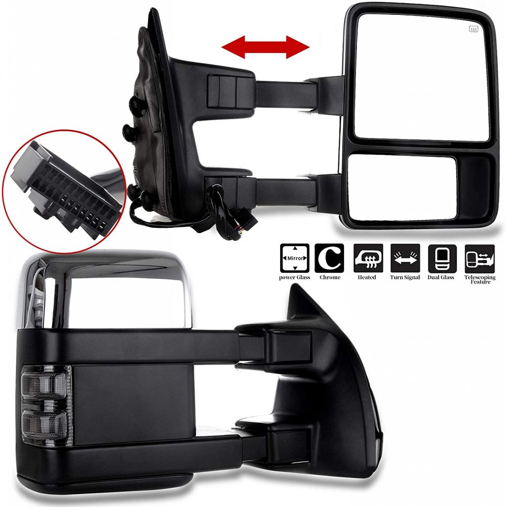 这些是牵引式或露营式的镜子。它们通过提供更好的后视图来帮助司机判断道路。它们配有一个加热元件,可以在雾、雨或任何类似天气的情况下帮助镜子解冻,而且可以调节电源。他们自带一个内置LED转向灯,以帮助司机在黑暗或根据需要。
