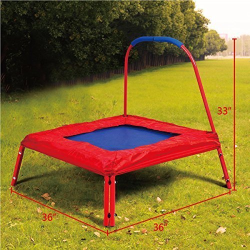 Amazon.com上最受欢迎的儿童产品之一。可折叠的蹦床需要很少的设置和组装时间,因此几乎可以开箱即用。直径为36英寸,它可以容纳高达150磅的重量。蹦床是ASTM F963-08第1部分和第2部分,安全批准,以及HR 4040新联邦政府的玩具安全标准。