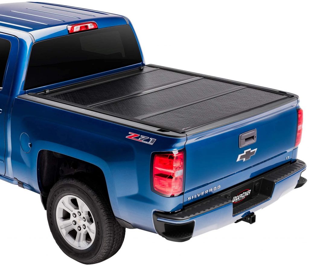 在第二位,我们为GMC Sierra提供了卧底弯曲硬折叠卡车床Tonneau盖。这款卡车床盖具有耐用的铝制面板,并带有磨砂黑色的饰面。它还使您可以在三个安全位置上驾驶盖子:封闭,部分关闭并完全打开。选项,选项,选项。