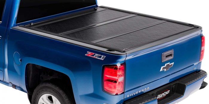 GMC Sierra的Bak Bakflip MX4硬折卡床Tonneau盖在我们的名单上排名第三。Bak的这款卡车床盖具有耐用的铝制面板,它们会自动锁定,因为盖子是部分或完全闭合的,并且在面板上有哑光,可防止标记,划痕和紫外线损坏。