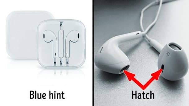 最初的耳机和EarPods有一种塑料包带有蓝色的色调,而假的会有轻微的黄色。产品包括包装盒重1.8盎司.在EarPods中,将不会有工厂钎焊的迹象孵化是金属做的,而假的是塑料做的。副本有时甚至没有左右符号.