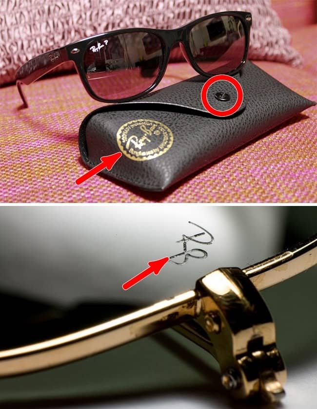 的左手臂你原来的雷朋眼镜上都会有一个以RB开头的序列号,还有关于颜色、调光水平、镜片直径和鼻梁大小的信息。在右手臂是型号名称、标志生产工厂的字母和标志欧洲安全标准的标签。的离开镜头有雷朋的书面记录,你不能删除它。的正确的镜头会有激光雕刻RB,在里面还是外面