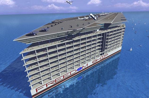 这个想法是在90年代提出的,它本来是一个浮动的自给自足的城市,将在两年内穿越地球。自由船旨在让50,000人拥有自己的经济,工作,学校,商店以及传统城市所拥有的一切。它没有起作用,因为没有多少人愿意将自己的生命完全转移到可能是下一艘泰坦尼克号的船上。与世界各地的事务一样,人们在公开战斗时如何在如此饱满的空间中和平生活。